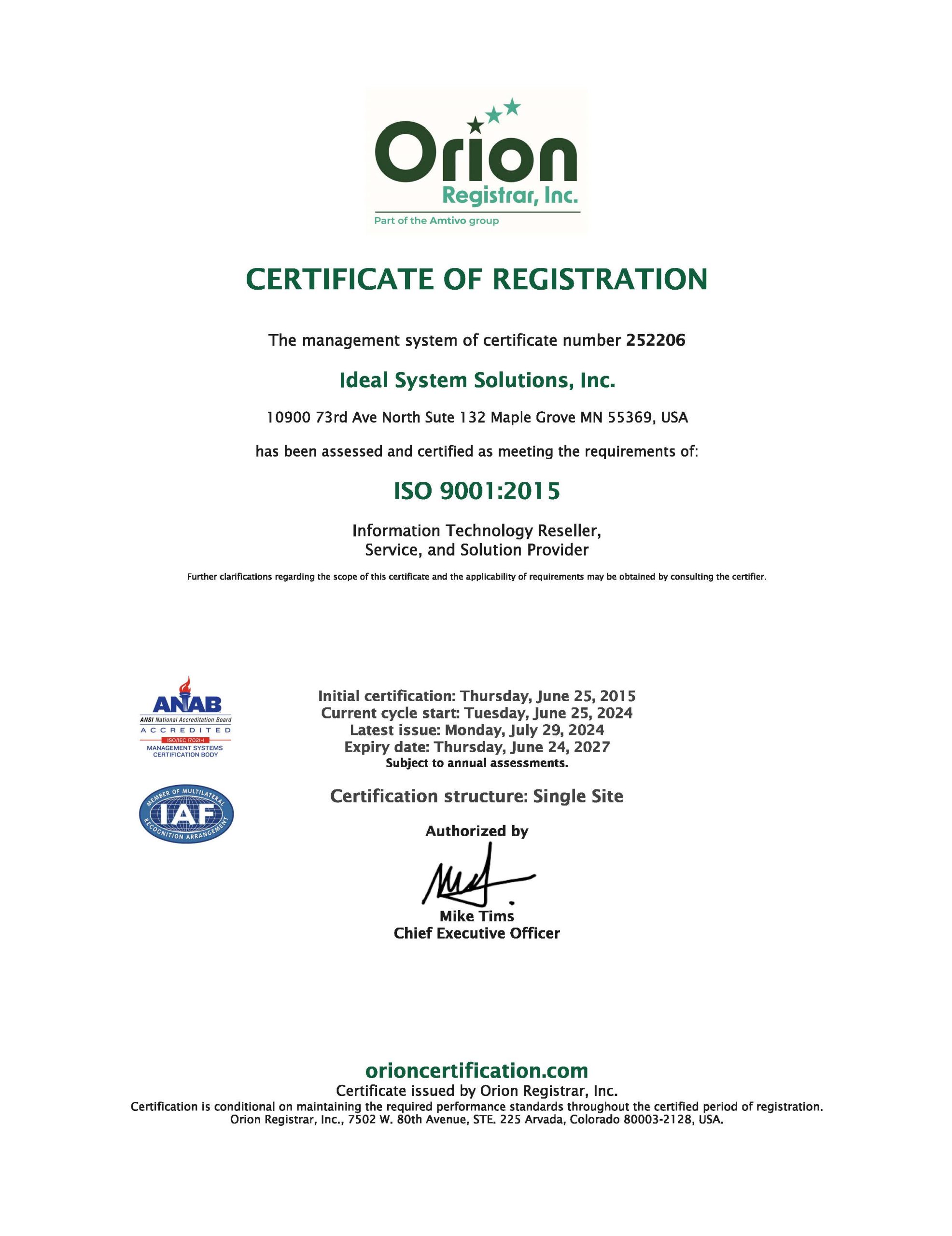 ISO 9001:2015 Quality Management Certificate